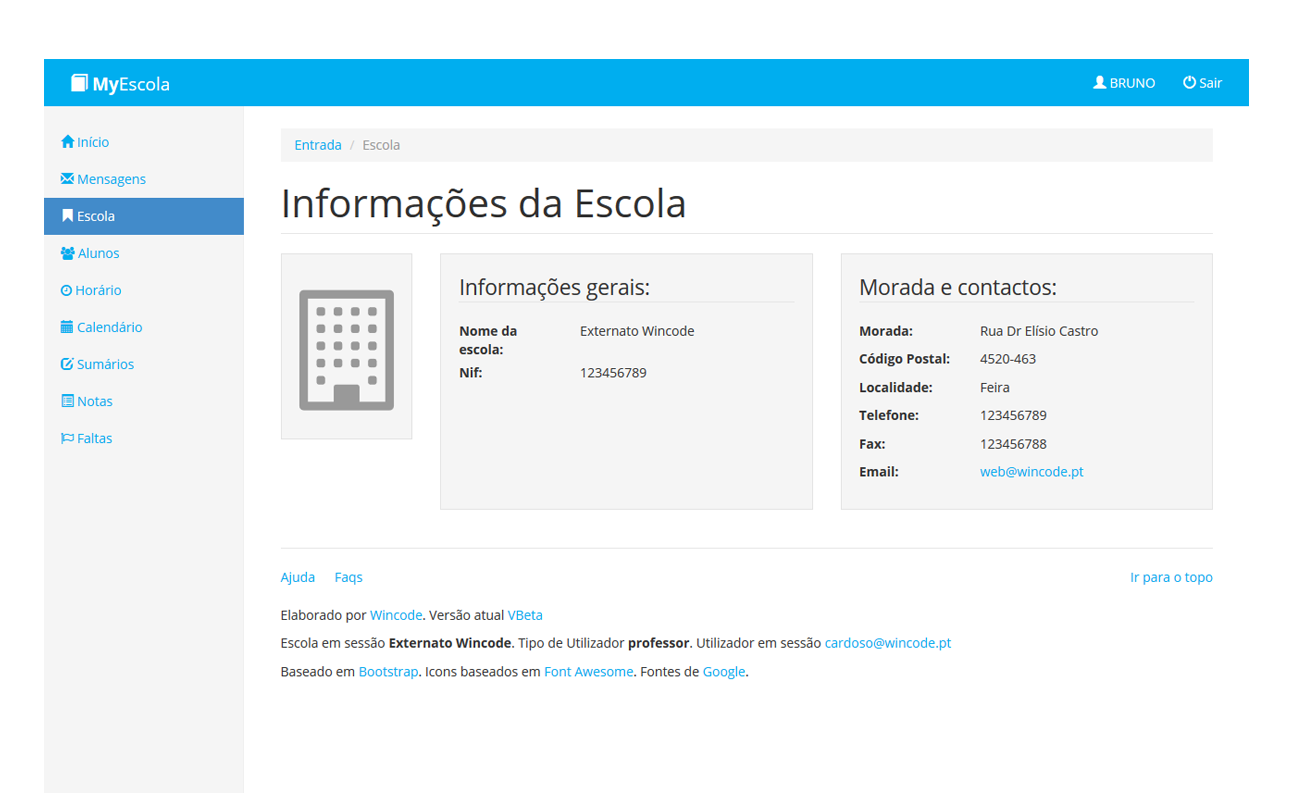 Todos os utilizadores podem aceder a informações genéricas sobre a escola, professores ou alunos como os seus contactos, moradas ou emails.